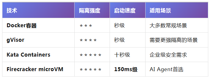 三、沙盒的技术实现:从Docker到微虚拟机